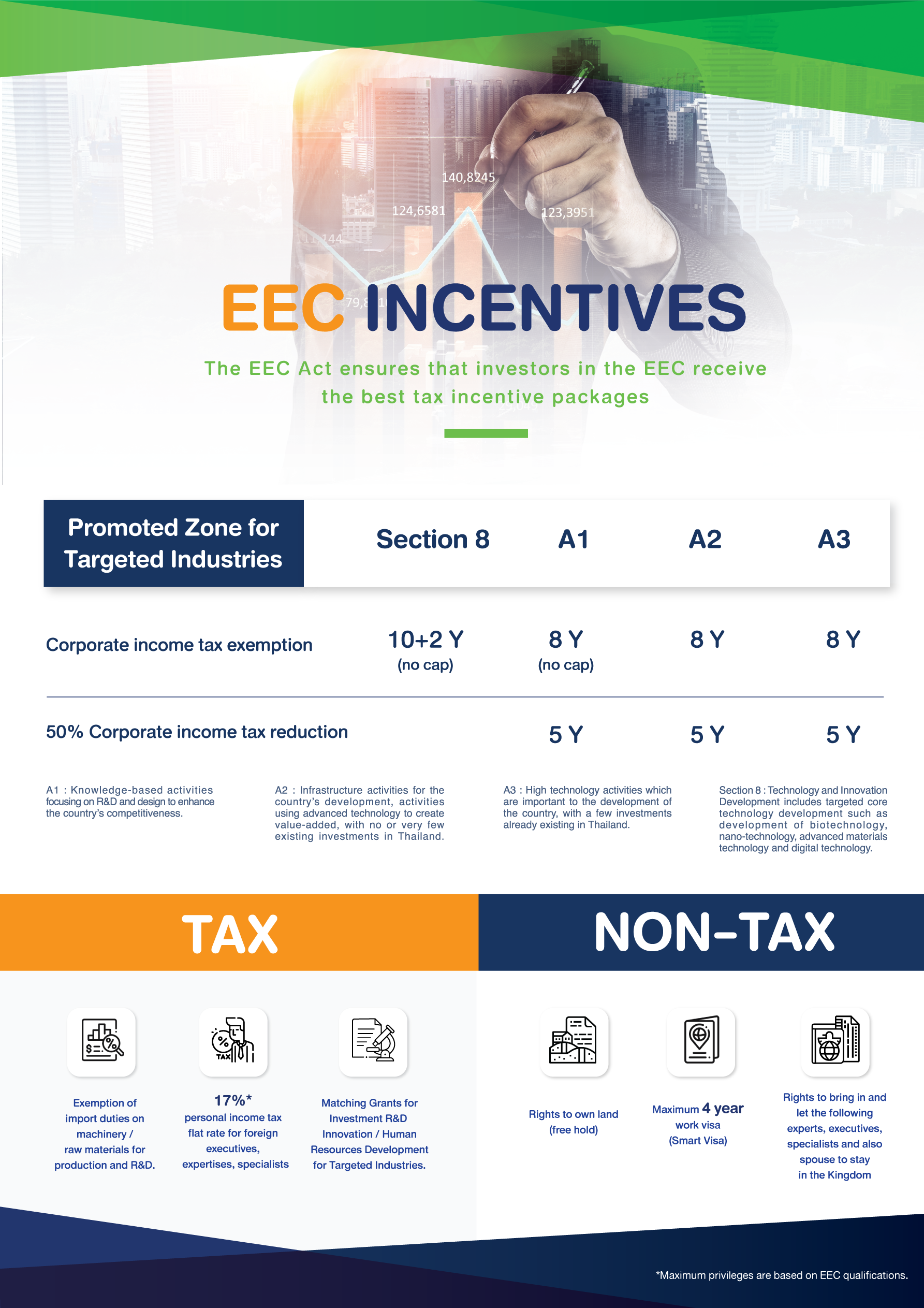 EEC to become an investment promotion zone and have special privileges and incentives: the most favorable in Thailand, Internationally competitive, on top of BOI privileges.